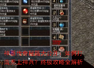神器传奇秘籍大公开:如何打造无上神兵?终极攻略全解析